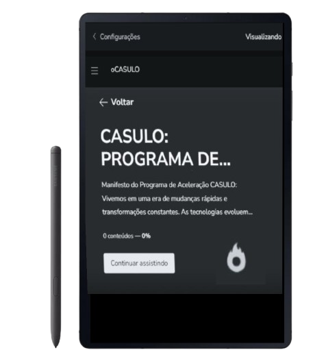 Acreditamos na colaboração. Sabemos que ninguém constrói nada sozinho. Por isso, o nosso programa não é apenas um ambiente de aprendizado, mas uma comunidade vibrante de empreendedores, mentores, especialistas e parceiros dispostos a compartilhar conhecimento e experiências para que todos cresçam juntos. Acreditamos no impacto. Para nós, sucesso não se mede apenas por números. Sucesso é gerar mudanças reais e duradouras. Queremos ajudar empresas que estão criando soluções para problemas reais, que têm um impacto positivo nas pessoas, nas comunidades e no mundo. Nosso compromisso é fornecer as ferramentas, o conhecimento e o suporte necessário para as empresas poderem não apenas sobreviver, mas prosperar nesse ambiente dinâmico e competitivo. Queremos ser o motor que impulsiona o sucesso de cada empreendedor que aceitar o desafio de acelerar. Se você é um visionário, se acredita no poder da transformação e está pronto para levar sua empresa ao próximo nível, o CASULO é o lugar certo para você.>Juntos, vamos nos preparar e moldar o futuro.